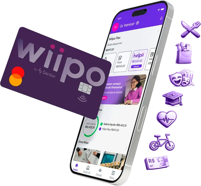 O colab escolhe quando, onde e como usar seus benefícios e acompanha tudo pelo app Wiipo.