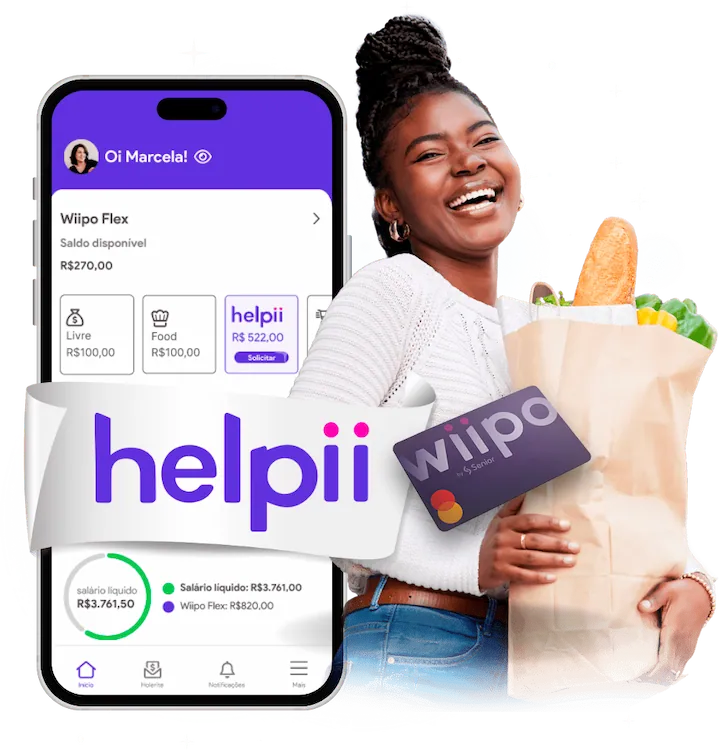 O helpii é um benefício financeiro de acesso simplificado a uma parte do próximo salário, evitando juros e o endividamento dos colabs.